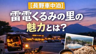 長野県東御市の道の駅「雷電くるみの里」での車中泊体験を徹底解説。静かで安心な環境、温泉・グルメ・観光地も充実。初心者にもわかりやすく、快適に過ごすためのコツやマナーをまとめました!