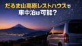 だるま山高原レストハウスで車中泊はできる?トイレの夜間利用、駐車場の広さ、富士山の絶景、守るべきマナー、近隣温泉情報までわかりやすく解説。初めての方でも安心できる実用ガイドです。