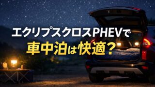 エクリプスクロスPHEVで車中泊は本当に快適?エアコンは何時間使える?冬は寒くない?実際の使い方から電費・燃費・バッテリー持ちまで、購入検討者向けにわかりやすく徹底解説します。