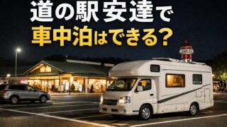 道の駅安達での車中泊を検討している方へ向けて、上下線の違い、24時間設備、夜の過ごし方、買い物や食事の便利さ、利用時の注意点まで実用目線で整理した記事です。