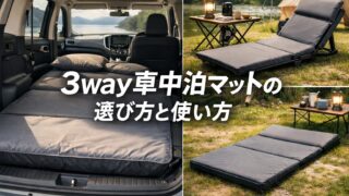 3way車中泊マットの特徴、メリット、選び方、快適に使うコツ、購入前の注意点までを詳しく解説。厚み・サイズ・収納性・お手入れのしやすさを比較しながら、自分に合う一枚を見つけるためのポイントをまとめています。