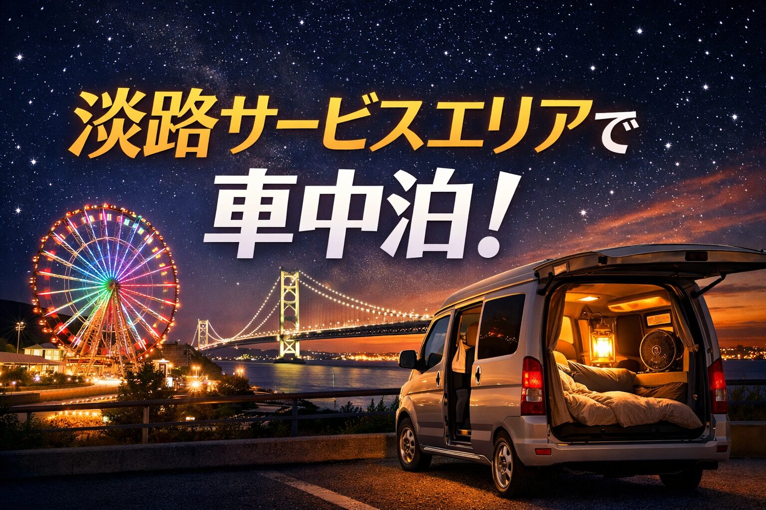 淡路サービスエリアは、車中泊に理想的な設備と環境が整った場所です。明石海峡大橋の絶景、名物グルメ、安心できる清潔な設備、そして周辺観光とのアクセスの良さと、すべてが揃っています。
