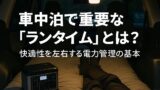 車中泊では、スマートフォンの充電や照明、パソコンの使用、さらには小型冷蔵庫や電気ケトルなど、さまざまな家電を使う場面があります。
