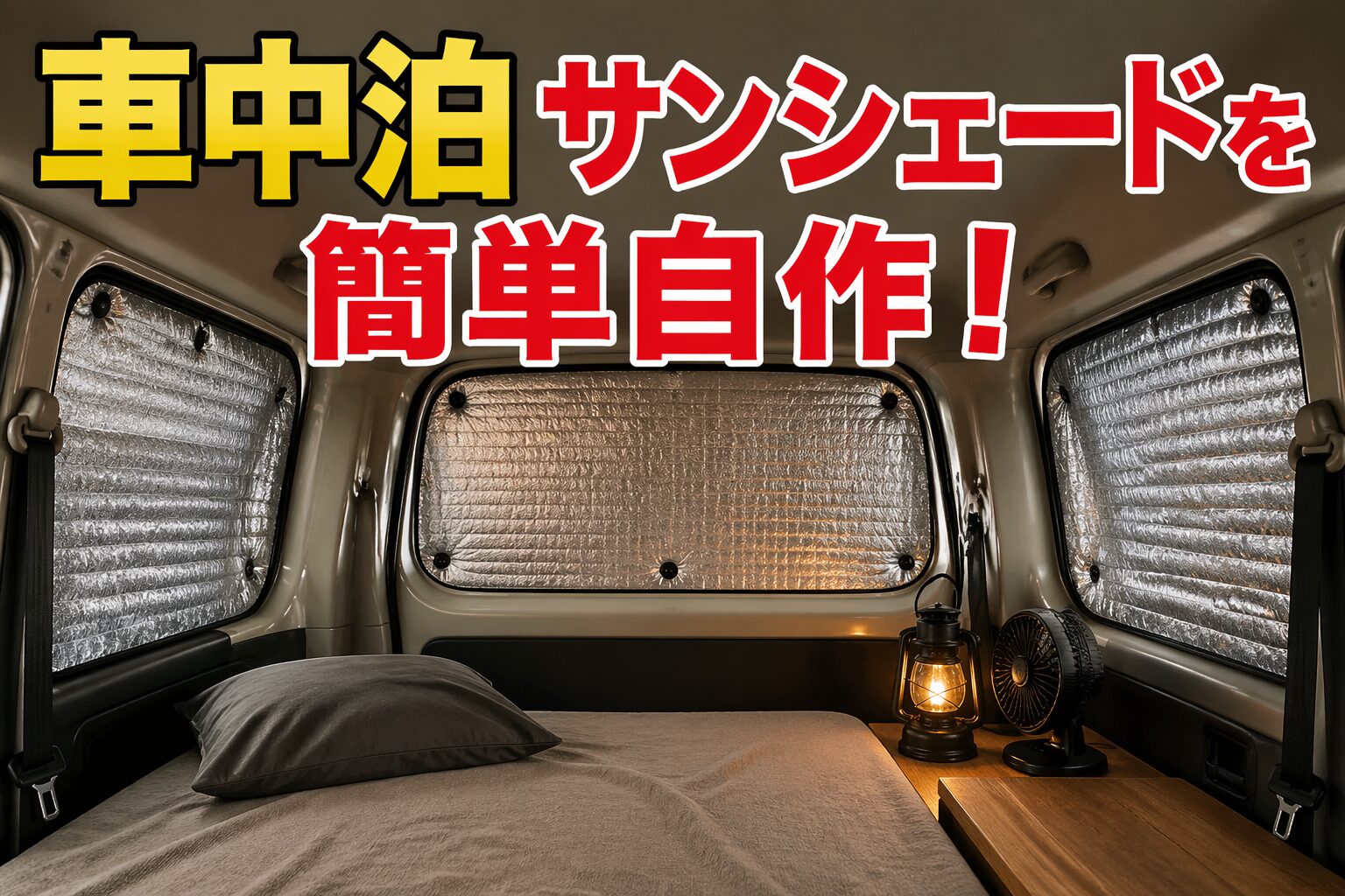 車中泊をしてみたいと思っても、外からの視線や朝日のまぶしさ、夏の熱気や冬の冷えが気になって落ち着かないことがあります。そんなときに役立つのがサンシェードです。専用品は便利ですが、窓の数だけそろえると意外と出費が増えます。その点、自作なら使いたい窓から少しずつ作れますし、好みの素材や使い方に合わせて調整しやすいのが魅力です。この記事では、車中泊で使いやすいサンシェードを簡単に作る考え方から、材料選び、作り方、使いやすくする工夫、安全面の注意点までを順番にまとめています。