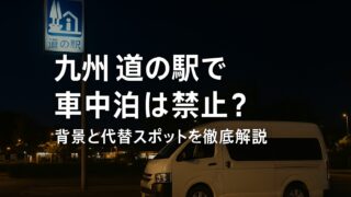 地域別 車中泊スポット 九州の道の駅で車中泊は禁止?背景と代替スポットを徹底解説 九州の道の駅で車中泊は禁止?その背景や禁止の理由、車中泊が可能な代替スポット、快適に楽しむためのポイントや注意点を詳しく解説します。 地域別 車中泊スポット車中泊できる場所・道の駅車中泊禁止・危険情報