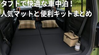 車中泊グッズ・ノウハウ タフトで快適な車中泊!人気マットと便利キットまとめ タフトで車中泊を快適にする車中泊キットとマットを徹底解説。選び方のポイントやおすすめ商品、実際の体験談まで紹介。初心者からベテランまで役立つ情報をまとめました。 車中泊グッズ・ノウハウ車中泊マット・寝具