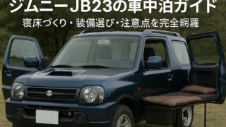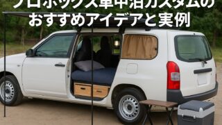 プロボックスを車中泊仕様にカスタムする方法を徹底解説。フルフラット化、収納、電源、実例、注意点まで初心者にも分かりやすくまとめています。