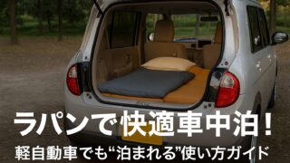 軽自動車「ラパン」で車中泊を考えている方必見。1名でも快適に泊まるためのシートアレンジ術、必要グッズ、季節別の注意点を詳しく解説します。