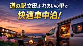 愛知県愛西市の道の駅立田ふれあいの里で車中泊はできる?気になる設備や治安、れんこんグルメ、周辺観光スポットまで実体験をもとに徹底解説!快適に過ごすための注意点やマナーも紹介しています。