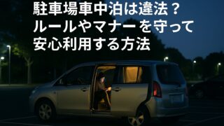 車中泊できる場所・道の駅 駐車場車中泊は違法?ルールやマナーを守って安心利用する方法 駐車場車中泊のルールや注意点、メリット・デメリット、快適に過ごすための工夫を解説。安全で快適な車中泊を実現するための完全ガイドです。 車中泊できる場所・道の駅