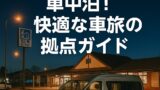 周辺には温泉や観光スポットも多く、車中泊とあわせて地域の魅力を存分に楽しめます。