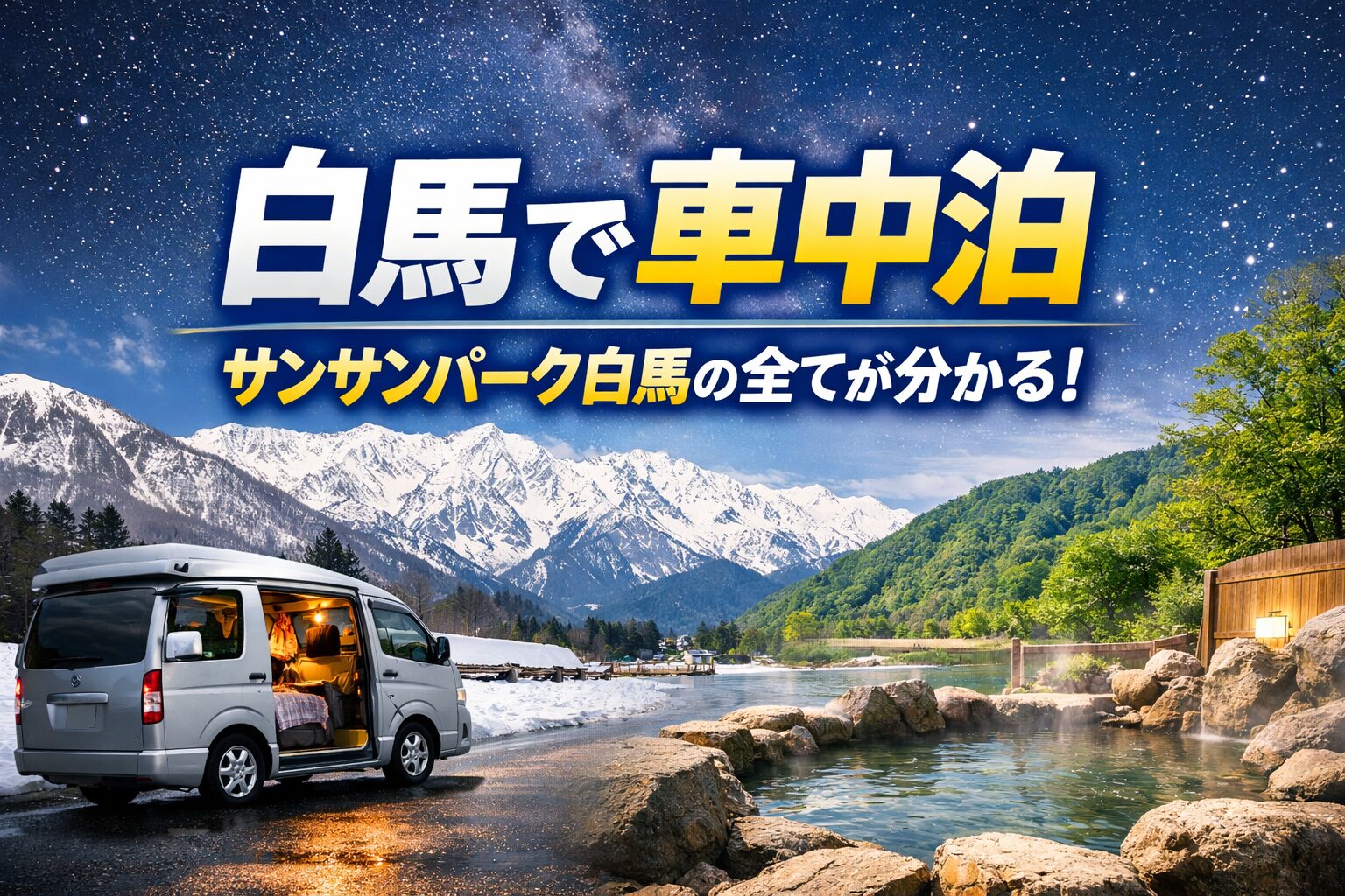 どのルートも、サンサンパーク白馬を拠点にすれば無理なく回れます。温泉で癒された後の運転は眠くなりがちなので、入浴後は車中泊でしっかり休むスタイルが安心です。