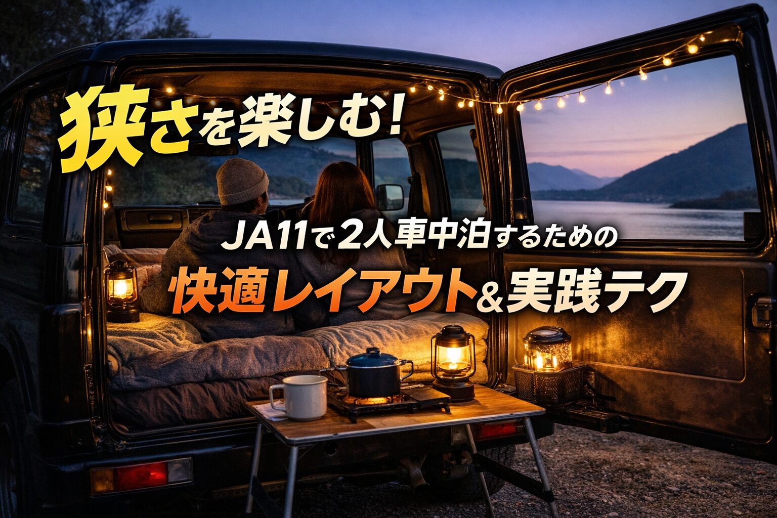 この記事では、実際に2人でJA11ジムニーで車中泊を楽しんだ体験をもとに、レイアウト、寝具、食事、スポット選びまで徹底解説!