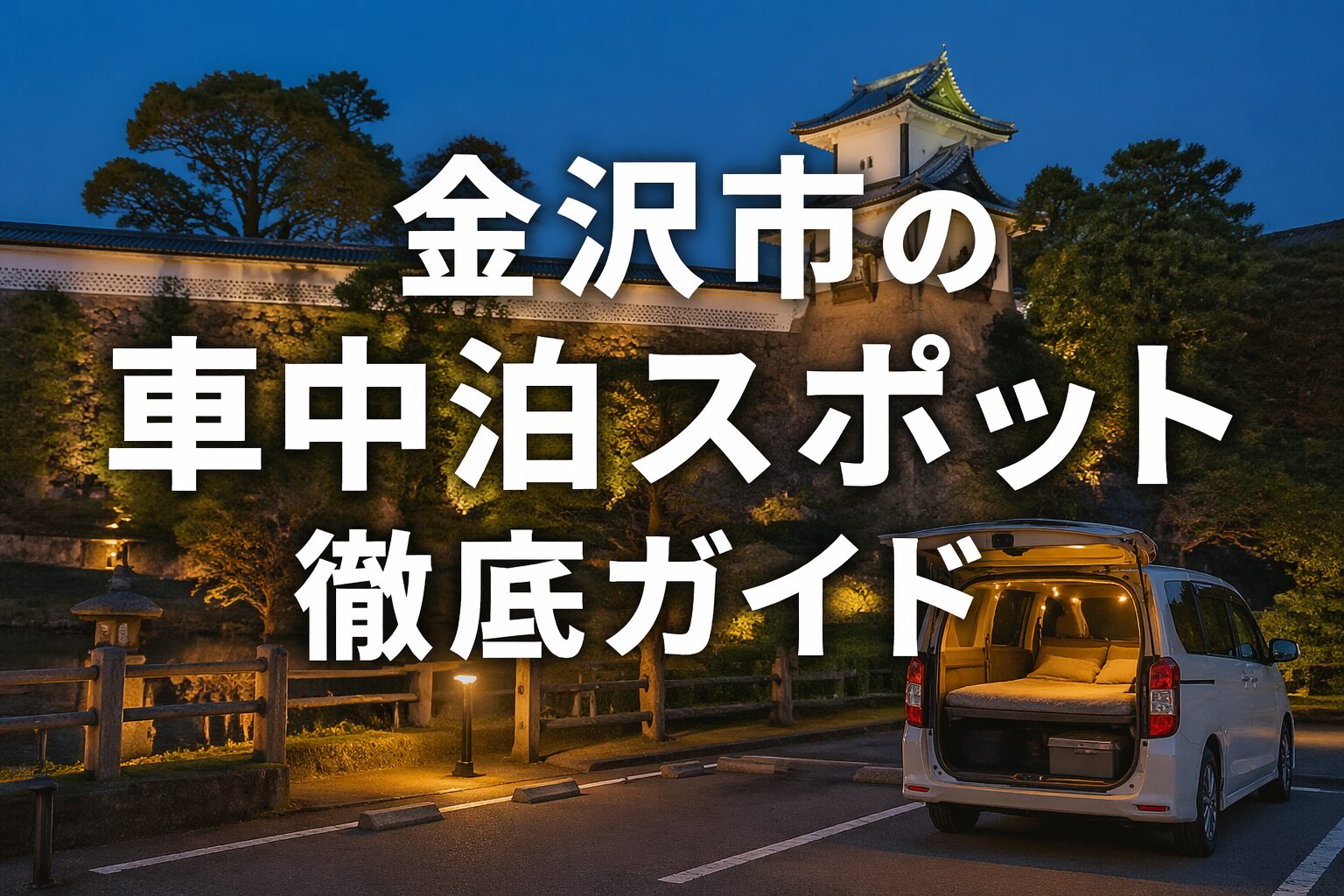 金沢で車中泊をしながら観光したいと思っても、中心部にそのまま泊まれる場所が多いわけではなく、どこを基準に選べばいいのか迷いやすいものです。観光地への近さだけで決めると、夜の静けさやトイレ、入浴、買い出しのしやすさで不便を感じることもあります。反対に、市内の候補と周辺の施設を役割ごとに見ていくと、自分に合った一泊はかなり選びやすくなります。この記事では、金沢市内の考え方、市内で押さえたい候補、周辺まで広げた探し方、現地で失敗しない確認ポイント、観光を気持ちよく始める回り方までをまとめて整理します。