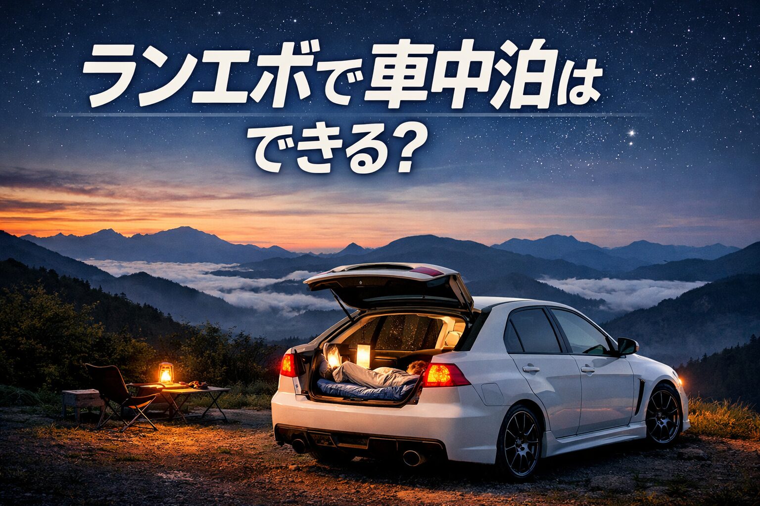 ランサーエボリューション(通称:ランエボ)は、スポーツ性能を重視したセダン型の車です。車中泊といえば、ミニバンやハイエースのような広い車を思い浮かべるかもしれませんが、ランエボのようなセダンでも工夫すれば車中泊は可能です。