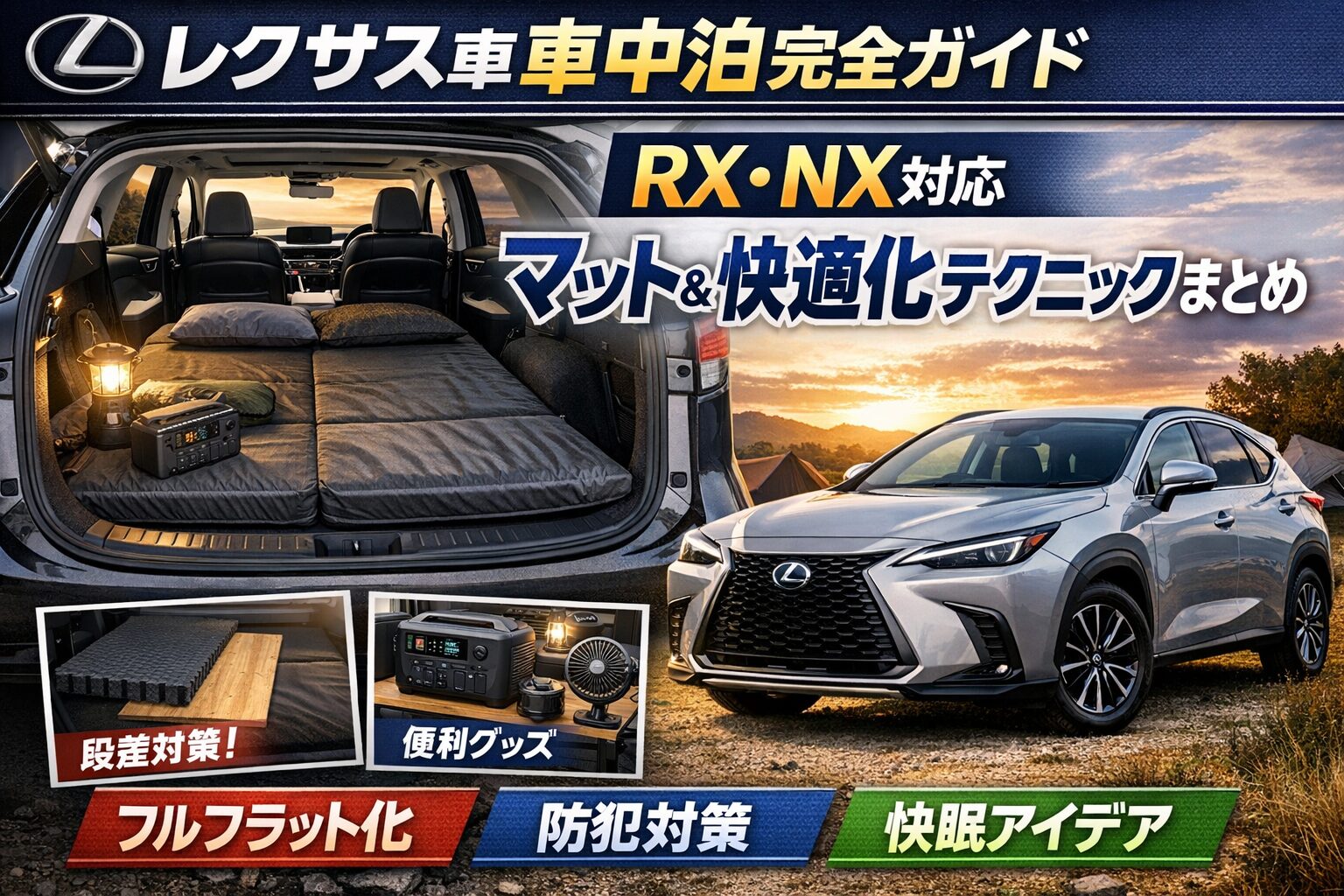 とはいえ、段差やフルフラット化、マット選びなど、知っておくべきポイントもたくさん。本記事では、実際のユーザー体験やブログで話題の情報をもとに、レクサスRX・NXで車中泊を楽しむためのノウハウとおすすめマットを徹底紹介します。