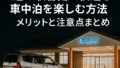 これらを徹底することで、快適で安全な車中泊を実現できます。