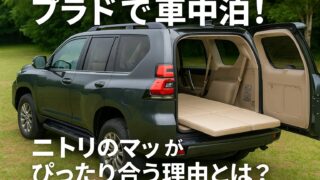 プラド車中泊にぴったりなニトリのマットを徹底解説。サイズ選びやおすすめ商品、設置方法、口コミまで詳しく紹介します。快適な車中泊を実現!