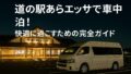 平坦な場所を選び、周囲との間隔を適度に保つのが快適な車中泊のコツです。
