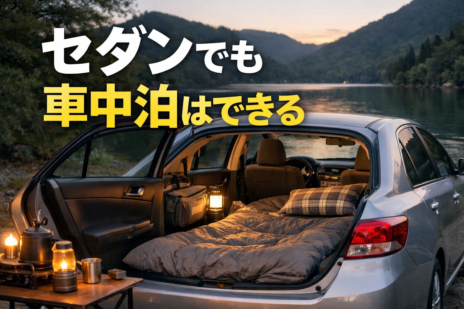 セダンでの車中泊は、ミニバンのような広さがなくても十分に楽しめます。