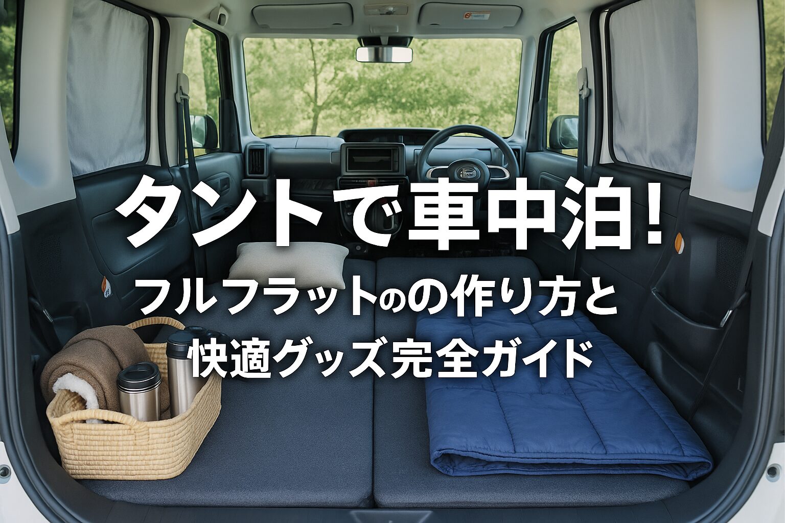 タントは、軽自動車でありながら広い車内空間と柔軟なシートアレンジが魅力で、車中泊との相性が非常に良い車です。フルフラット化を工夫すれば、大人が横になってしっかり眠れるスペースを確保できます。車中泊に必要なアイテムや快適に過ごすためのコツ、安全対策などをしっかり押さえておけば、初心者でも安心して旅を楽しめます。
