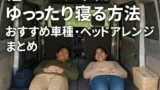 また、足元スペースを広く使うために荷物は前席に集約し、就寝時の動きやすさを確保することが重要です。